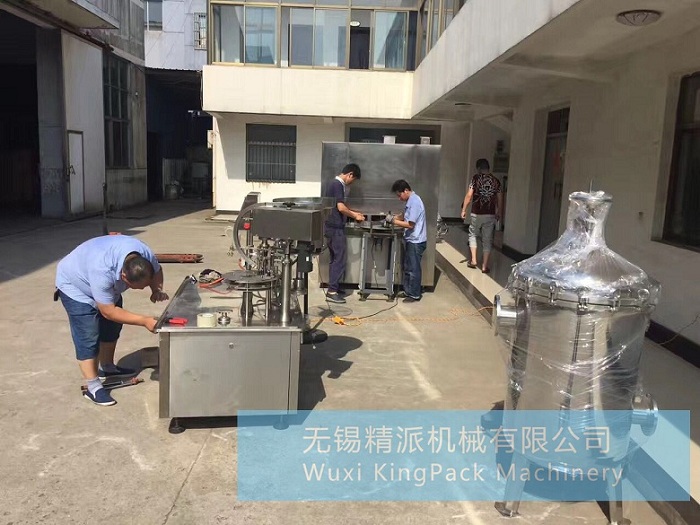 直线式灌装扎盖机是液体生产线中的灌封主机,主要用于对50ml玻璃瓶进行灌装轧盖.采用直线式输送,8个蠕动泵直线灌装,计量由PLC无级调节。自动上盖,轧盖。触摸屏界面,变频调速。并具有缺瓶不灌,无瓶不上盖等功能,自动化程度高.灌装不漏液,电磁振荡送盖,上盖率高。配防尘罩。该机设计合理,操作方便。