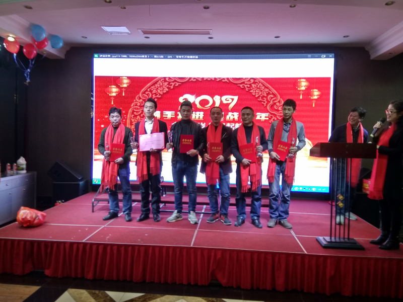 随后伴随着节目的进行,陆续颁发了“**员工奖”“**项目管理奖”“**项目执行奖”等奖项,号召全体员工向他们学习,学习他们在各自岗位上尽职尽责、任劳任怨,特别是舍小我顾大局的团队精神!公司王立新为优秀员工颁发了证书和奖品,鼓励他们戒骄戒躁,在新的一年起到模范带头作用,做出新的贡献。