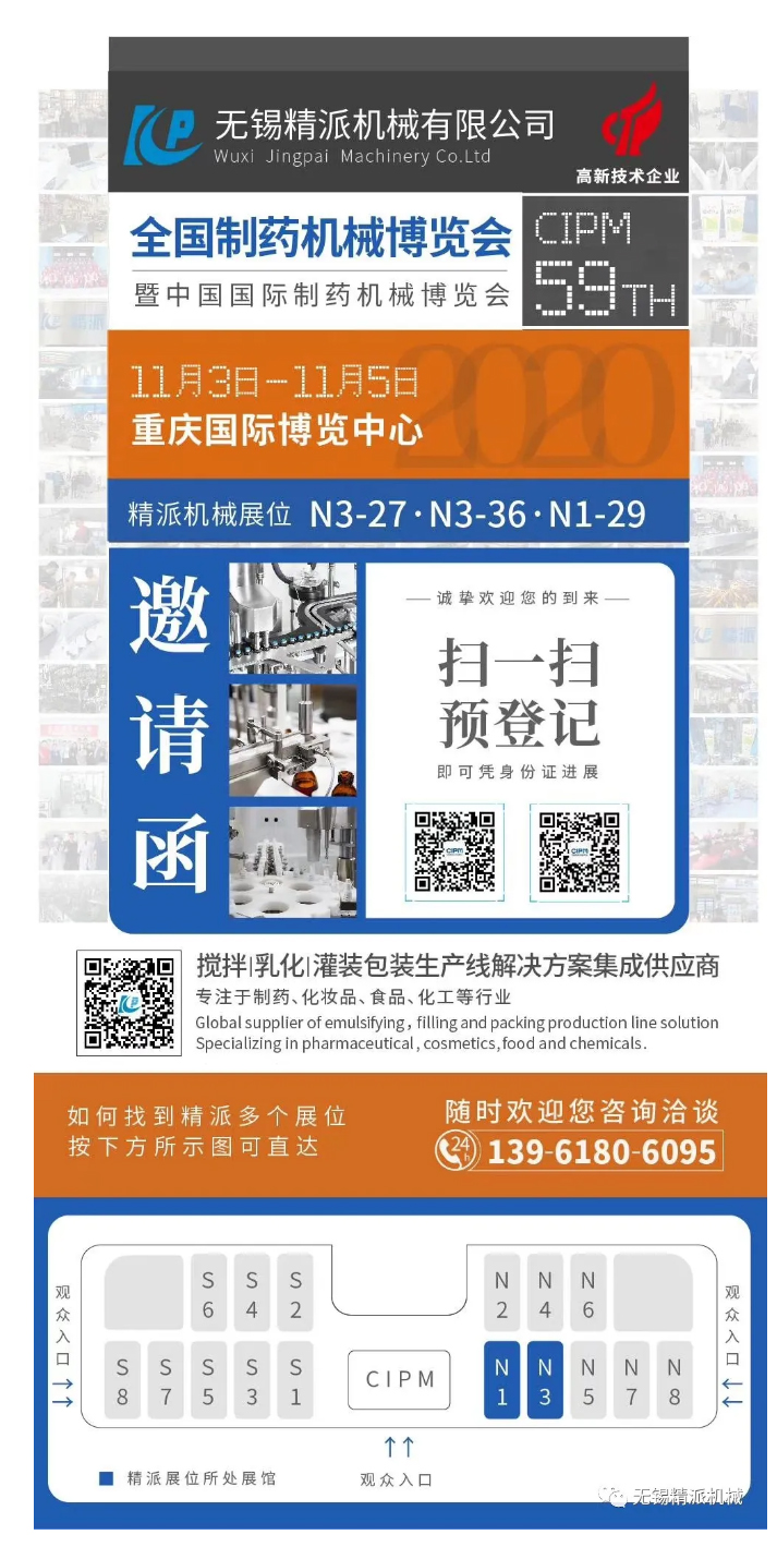 第59届全国制药机械暨中国国际制药机械博览会将于2020年11月03日至11月05日在重庆国际博览中心举行!