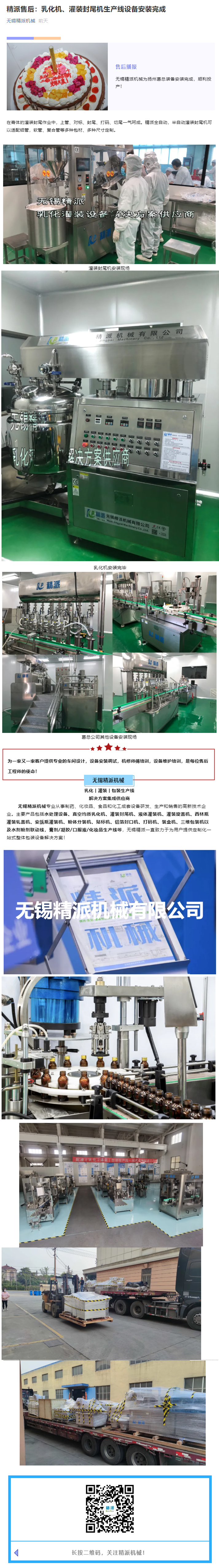 精派售后:乳化机、灌装封尾机生产线设备安装完成