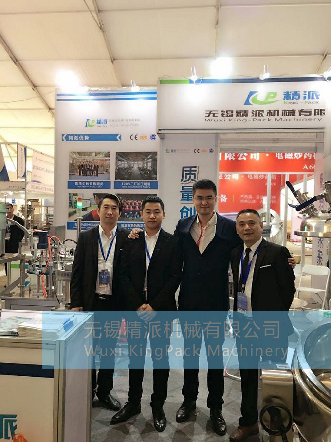 无锡精派机械有限公司是专业的制药、化妆品食品和化工成套设备生产和销售的高新技术企业。已致力于制药机械20余年,主要用于软膏、喷雾剂、溶液、粉剂、眼药水、精油等。此次带着我们自主研发并销售的成熟产品包括真空均质乳化机,全自动软管灌装封尾机、全自动灌装旋盖机、半自动灌装封尾机、灌装生产线等亮相。现场人气火爆,我们的药膏灌装产线试机效果得到体验者赞不绝口,现场接待人员服务热情,咨询客户络绎不绝。其中相当数量的企业留下联系方式,表示想要进一步探讨合作事宜。更有现场交付定金的客户。